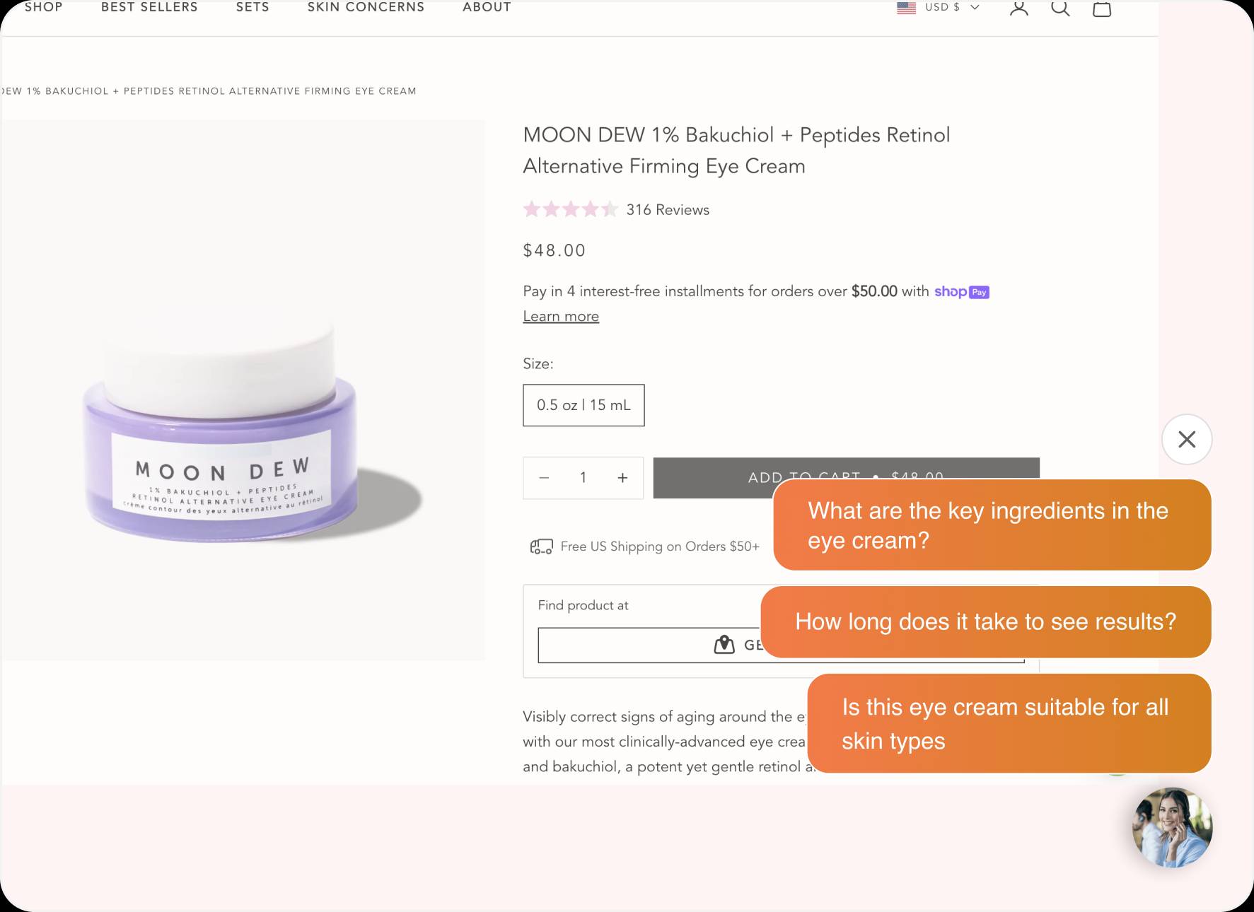 Have intelligent questions, all generated realtime with context on your product page